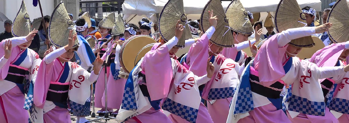 傳統的女性舞蹈「女舞」則是身穿長浴衣,頭戴草笠,腳踩木屐,美艷高雅的一種舞蹈。 宛如水上芭蕾,動作整齊畫一的表演被視為一種美。